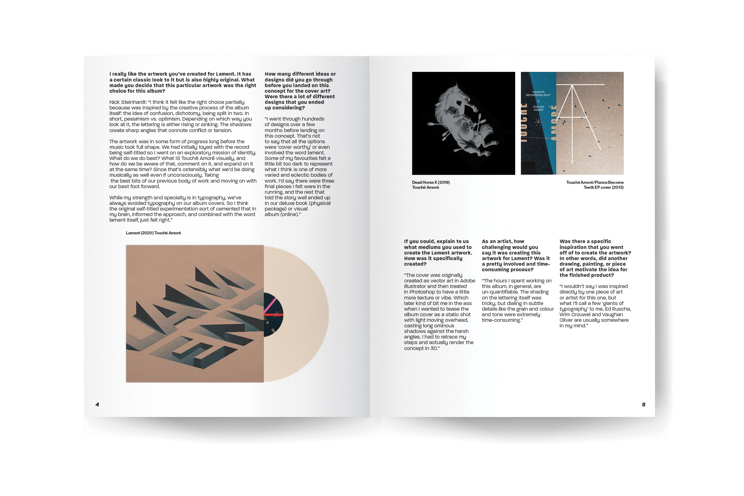 Optic Noise was a magazine created to highlight graphic designers and artists producing imagery for the music industry. Optic Noise looks at the individuals creating visual systems for album artwork. The purpose of Optic Noise is to give aspiring designers who are interested in creating imagery in the music industry insight into how it operates.